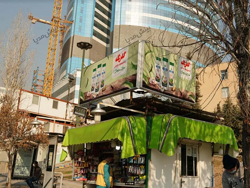 کیوسک بردها یکی از رسانه ها و ابزار های تبلیغات محیطی است که در تمام نقاط کشور وجود دارند و در بالای کیوسک های روزنامه فروشی و یا گلفروشی وجود دارند. همانطور که گفتیم کیوسک برد ها به دلیل موقعیت مناسب، پراکندگی زیاد و قیمت مقرون به صرفه ای که دارند به شدت مورد استقبال قرار گرفته اند. کیوسک های مطبوعاتی به دلیل اینکه اقلام و محصولات مصرفی و مورد نیاز مردم را به فروش می رسانند همیشه در اکثر نقاط شهر وجود دارند که می تواند تاثیر و بازده این تبلیغات را افزایش دهد.